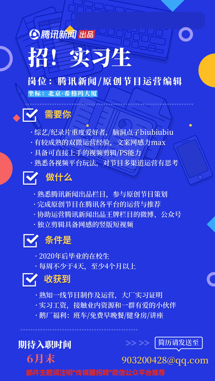 下一篇:?【实习】腾讯(北京)招募短视频编导实习生