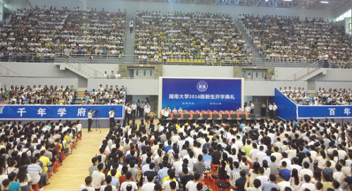 麓山巍巍,湘水泱泱。千回百转,2016级研究生终于在美丽湖大相遇。9月5号上午,2016级新生开学典礼在南校区体育馆内举行,共有4500余名硕士生和博士生参加,新影院2016级全体新生参加了全??У淅?。
