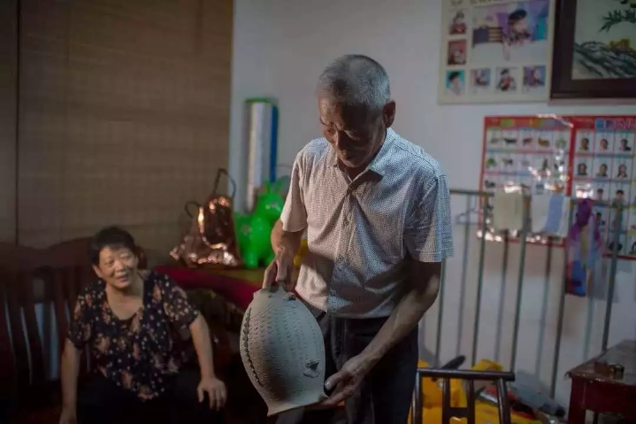 熊赛玉的工作间不大,在儿子儿媳开的陶艺店的二楼。晚上昏黄的白炽灯下,他从狭窄的楼梯上去,楼梯转角处的背影有老手艺人身上沉淀出来的时代感和年代感——古朴的心、执着的坚守。