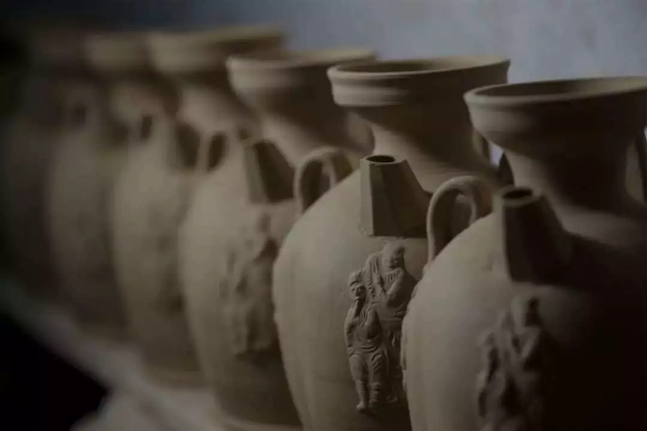 白天做好的陶坯静静等待风干