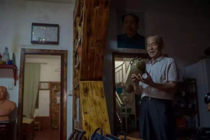 夏天空气闷热,又在狭小的空间里,没多久,熊赛玉的衣服就被汗浸湿了,贴在背上,看得见脊梁骨。一口气做了三个壶之后,他才歇下来。坐在凳子上缓了会,然后摸出一根烟来,问我们镜头面前方不方便,在得到了肯定的答复后,点燃了烟,那一点火光映在他的眼睛里,格外明亮。