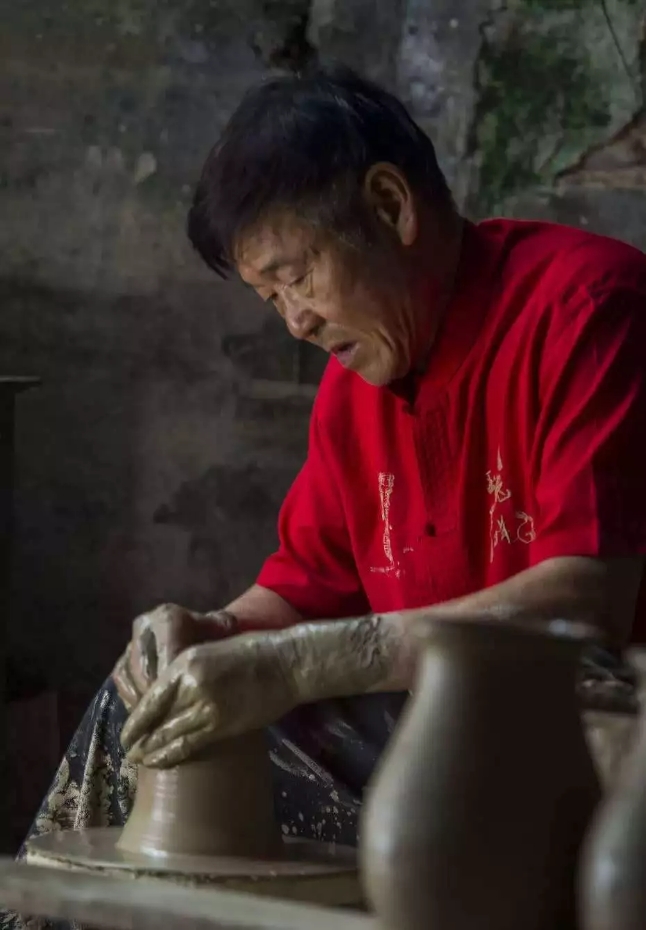 1962年,11岁的他跟随师傅刘国振先生学习拉坯技艺,期间师傅手把手教学,基本动作熟悉之后就让他自己钻研。一个毛头孩子,坐下来学手艺,只有重复单调的练习,却坚持了一辈子。用他自己的话说:“这是吃饭的家伙。做了几十年,也做不厌,还想做。”