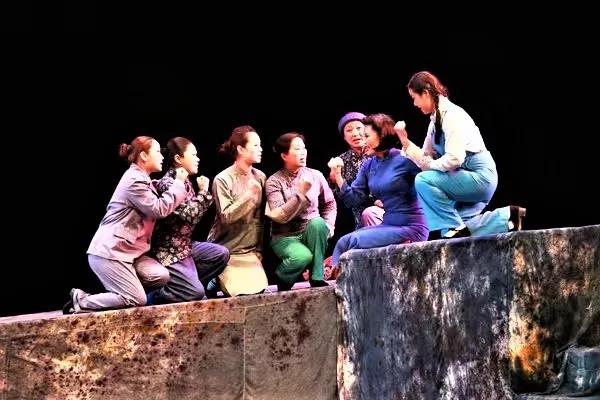 歌剧以“红梅赞”开篇,在S型的活动斜台上出现时空倒转。金永玲饰演的江姐在铁窗下含着热泪与难友们绣红旗,歌声动人心弦,感染了台下的每一个人。