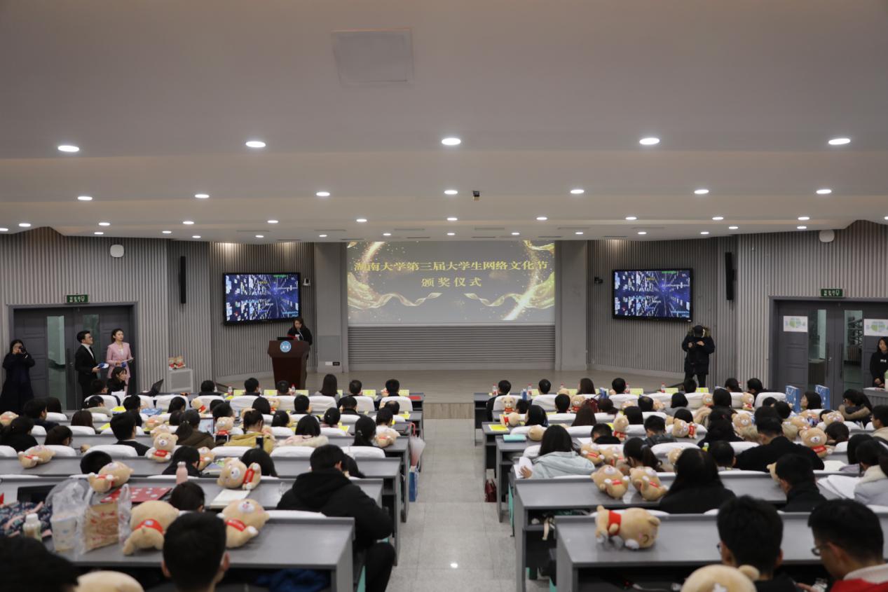 12月28日,湖南大学第三届网络文化节颁奖仪式在复临舍报告厅举行。本次仪式对优秀微电影类、优秀动漫、优秀摄影、优秀音频、优秀网文、优秀短视频以及其他类优秀奖品、十佳新媒体学生达人、十佳微信公众号、十佳易班学生工作站以及网络文化节优秀组织单位等一一进行颁奖表彰。