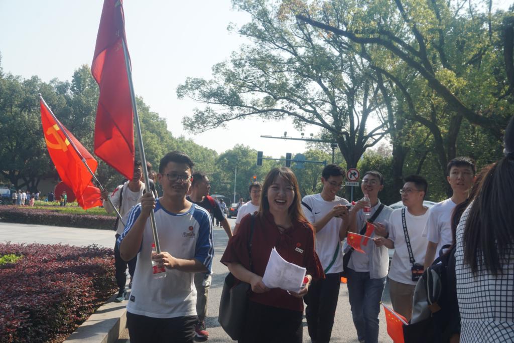 接着,同学们开始进行定向越野活动,活动以我校东方红广场、岳麓书院、黄兴墓、长沙会战阵亡将士纪念碑等为主要地标,在站点设置与中国共产党发展史相关的通关知识点作为通关方式,通过户外越野与互动问答相结合的方式,加深了大家对中国共产党和新中国光辉历程的了解,坚定了自己入党的初心。