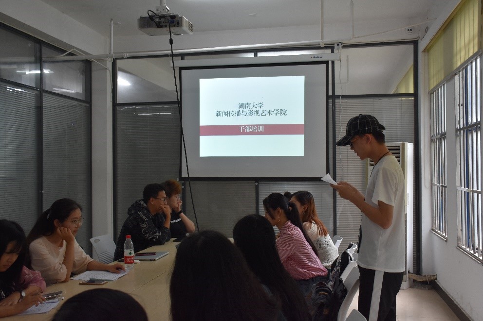 5月18日下午两点,湖南大学新闻传播与影视艺术学院在图书馆研讨空间进行了本学年第三次干部培训,主要有学生会各部门人员、18级年级会成员以及18级各班班长和团支书参加。此次培训总结了本学年学生干部在工作中遇到的问题,并进行了分析和解决。
