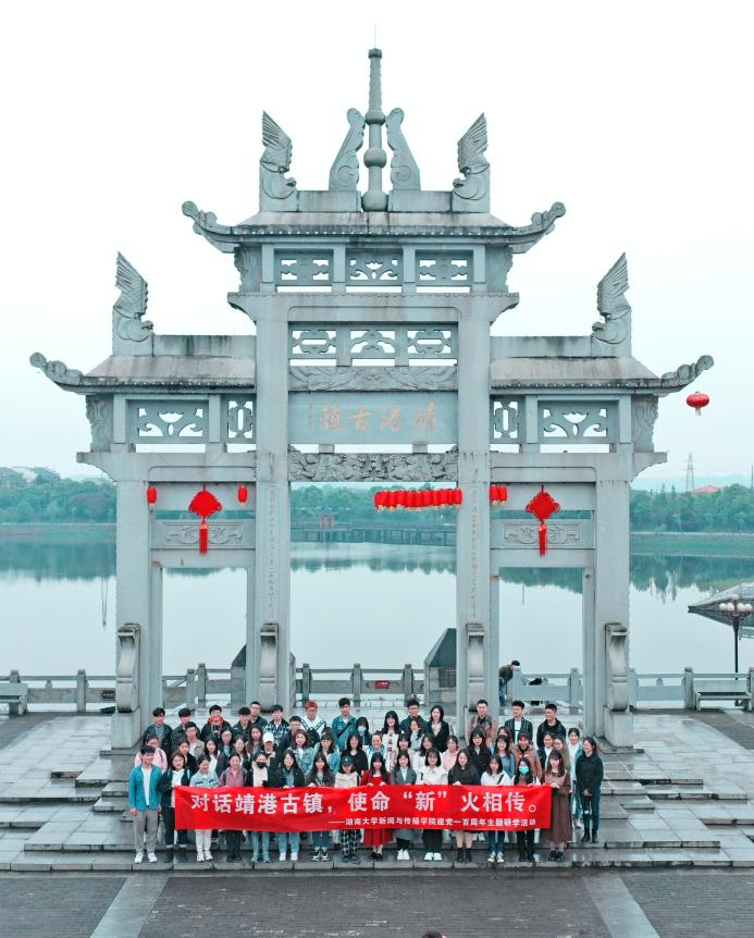 4月10日下午13:30,在杨湘雨、李潇、伍元虎三位老师、望城区文化旅游投资发展有限公司代表何文滔的带领下,新闻与传播学院本科生新闻党支部和广播编联合党支部的60多名同学来到位于湖南省长沙市望城区的靖港古镇开展了“靖港古镇研学游”的建党一百周年主题党日活动。