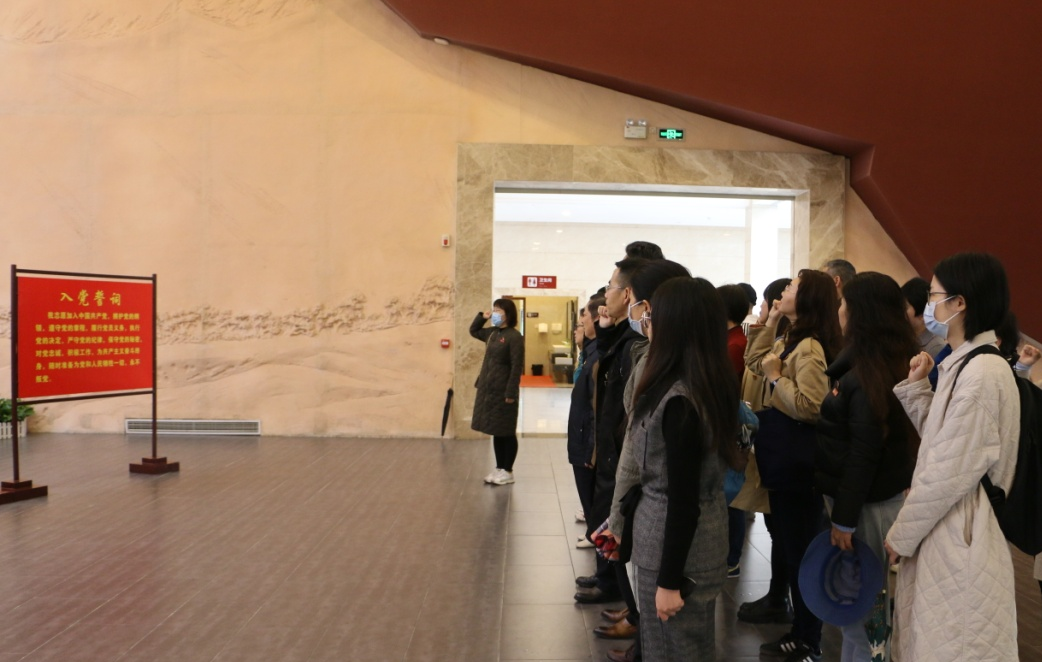 在秋收起义纪念馆,全体党员面对党旗,由李洪玉副书记领誓,重温入党誓词。之后,在纪念馆内,大家一起重温历史、缅怀先烈,在中国人民军第一面高高飘扬的军旗下追忆红色岁月,感悟革命精神。