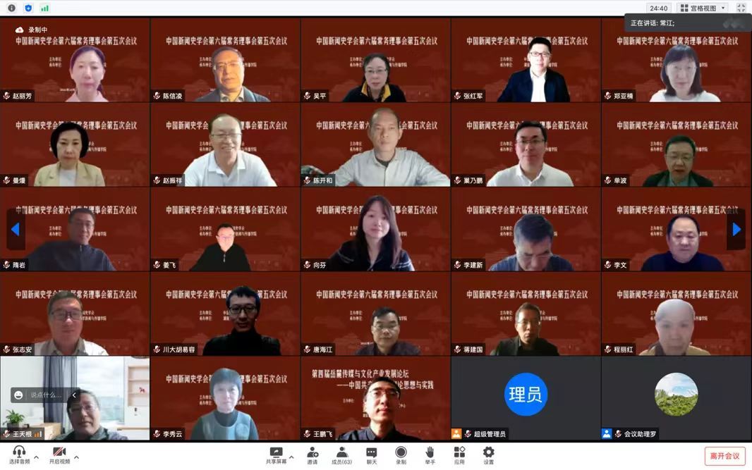 10月29日至30日,中国新闻史学会第六届常务理事会第五次会议暨第四届岳麓传媒与文化发展论坛,通过线上线下结合的形式在湖南大学举行。来自北京大学、清华大学、中国社会科学院等全国50余所高校和研究院所的新闻传播学者围绕“中国共产党新闻舆论思想与实践”的论坛主题,就“中国共产党新闻舆论工作历史经验”“中国共产党新闻舆论思想”“突发事件舆论引导”“新时代的国际传播”“新媒体 新发展”“新文科建设背景下的新闻传播教育改革与一流专业建设”等议题开展学术研讨。