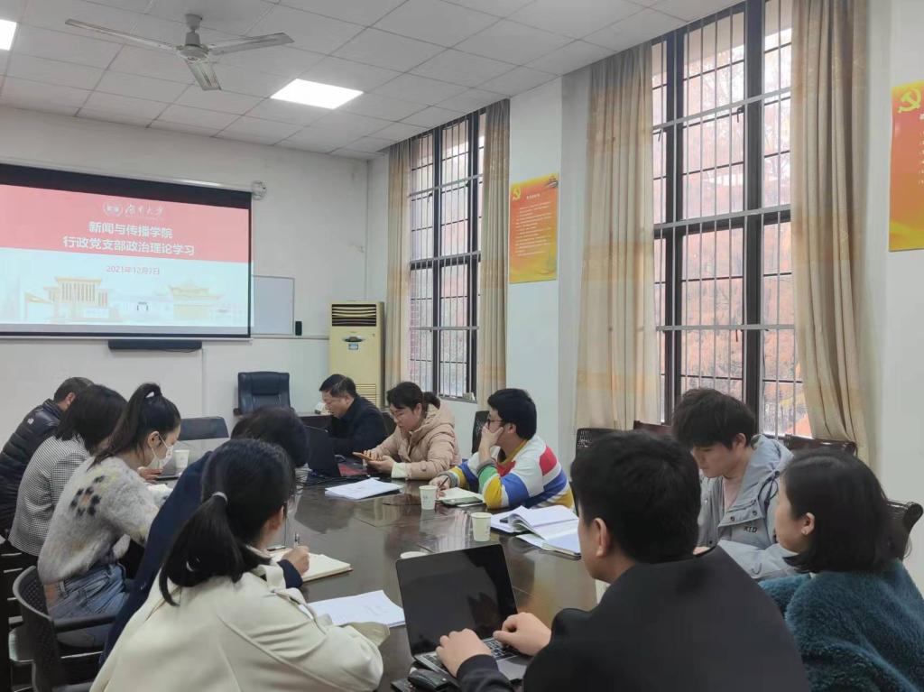 12月7日下午,新闻与传播学院行政党支部政治理论学习大会在北楼306召开,学院全体管理辅助人员参加,会议由党委副书记李洪玉主持。