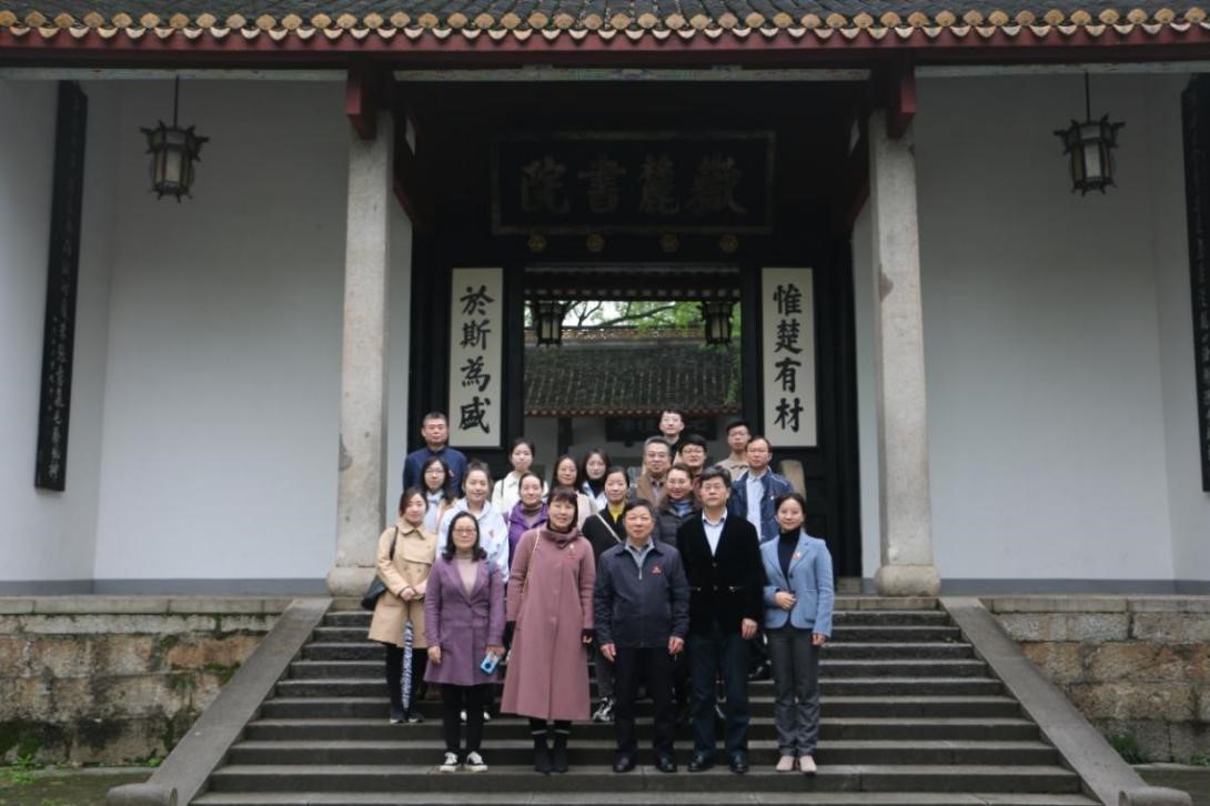 4月7日上午,新闻与传播学院围绕“学史明理”主题赴岳麓书院开展党史学习教育专题研学活动。学院党委书记胡建国,副书记李洪玉,副院长向志强、阳美燕、谢莹,在校支部书记及部分党员代表参加了此次活动?;疃氲皆缆词樵旱澄笔榧锹砘汀暗车氖凳虑笫撬枷肼废卟咴吹亍弊髯ㄌ饨步?。