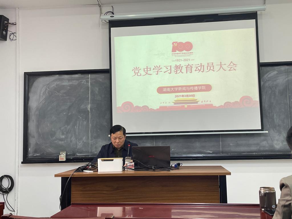 为深入贯彻习近平总书记在党史学习教育动员大会上的重要讲话精神,进一步激发基层党组织活力,以积极的面貌庆祝建党100周年, 3月30日,新闻与传播学院在北楼312教室召开党史学习教育员大会暨第一次专题党课。大会由学院党委副书记李洪玉主持,党委书记胡建国作动员并做第一次专题党课,学院领导班子、学院全体教职工党员参加了此次大会。