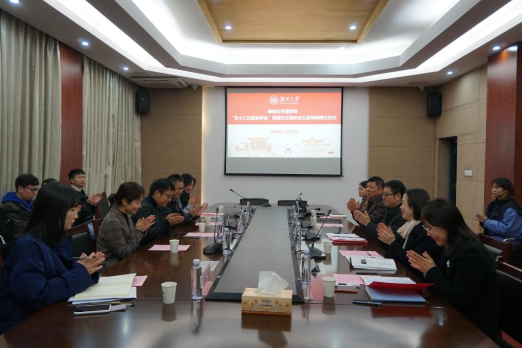 会上,安超校友受聘为新闻与传播学院学生职业生涯导师。会议由新闻与传播学院李洪玉副书记主持。