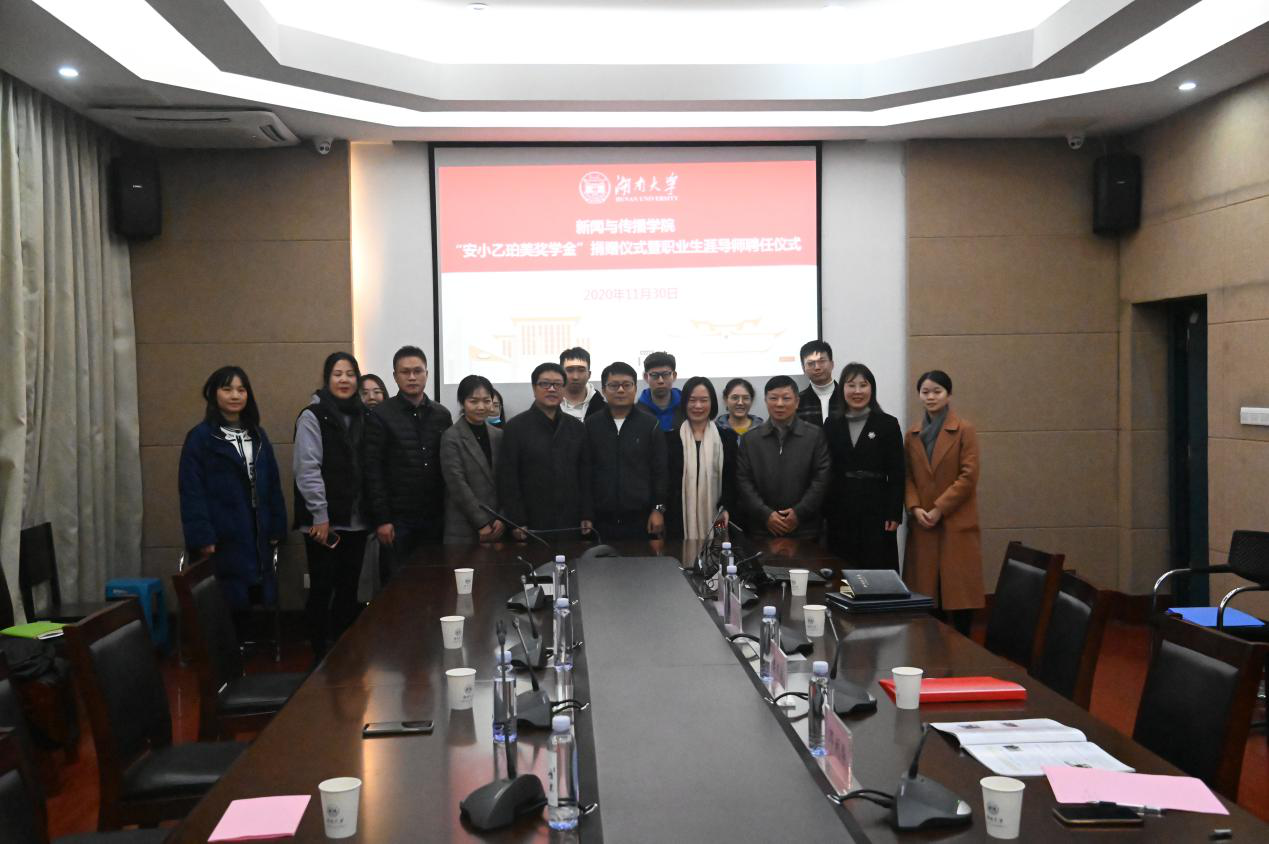 11月30日,我校2000级新闻专业校友、浙江校友会副会长、杭州安小乙进出口有限公司总经理、杭州丹奇商贸有限公司总经理、浙江珀美文化传媒有限公司总经理安超先生向新闻与传播学院捐赠100万元,设立“安小乙珀美奖学金”,用于奖励新传院优秀研究生。安超校友挚友陈敏、徐晓燕夫妇,发展联络处(教育基金会)、新闻与传播学院单位负责人等出席仪式。