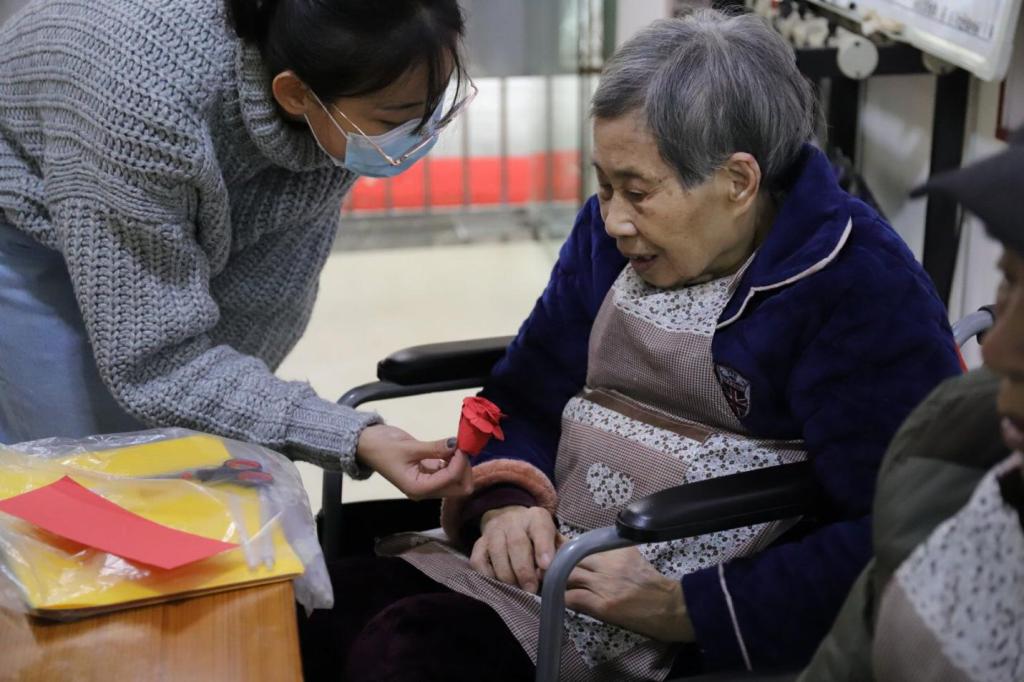 与此同时,有些老人腿脚不便,志愿者便俯身倾听,主动与老人交流。老人们也十分喜欢志愿者,向志愿者讲述自己年轻时的故事。在交谈中,志愿者了解到有一位爷爷曾经在海南岛当炮兵保家卫国的事迹。在你一言我一语中,两代人的隔阂就渐渐打破,取而代之的是彼此的信任,坦诚,和酝酿着的温馨。