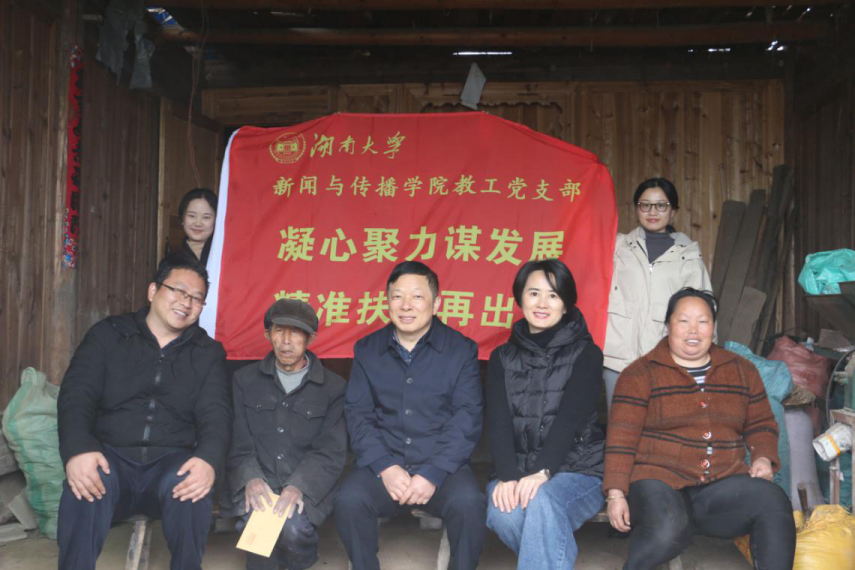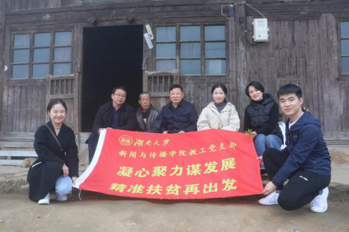 11月20日,新闻与传播学院党委书记胡建国带领教工党支部党员代表赴隆回县白水洞村开展扶贫调研、落实结对帮扶工作。