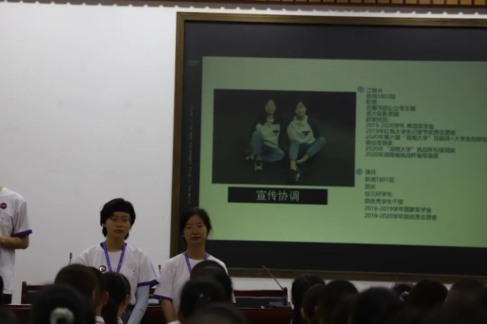 会议的最后,由播音班学姐游婧娴同学教全体新生唱《湖南大学校歌》,同学们认真学习并获得了较好的成果,歌声悠扬回荡在北楼217教室,袅袅不绝。