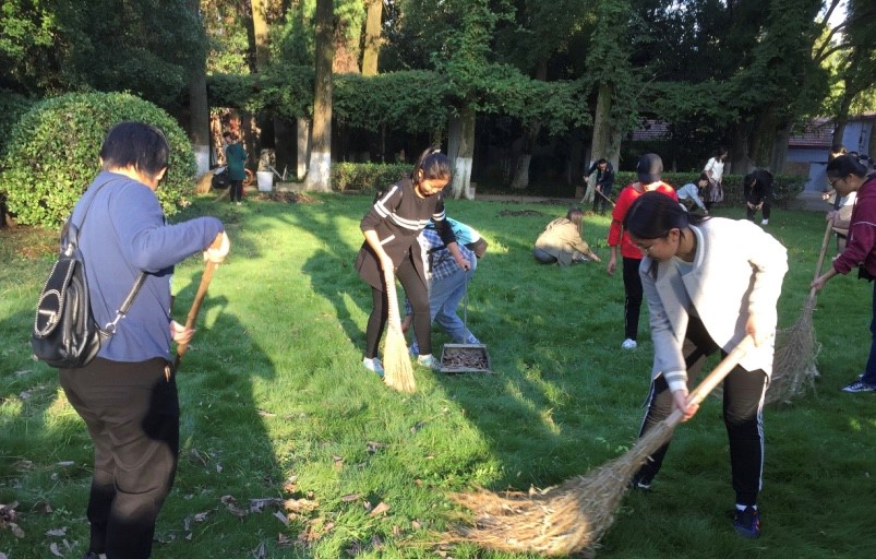 下午4点,志愿者与学生党员们准时在北楼集合,并开始分头行动。他们的目的只有一个:彻底清扫北楼,不留任何卫生死角。清扫活动中,志愿者们带着扫帚、铁耙、花木修剪刀等工具清扫地面,修剪花木,清理杂草。同学们或是用扫帚堆起来沉积的落叶,或是用手捡起来路边的垃圾,干得热火朝天。