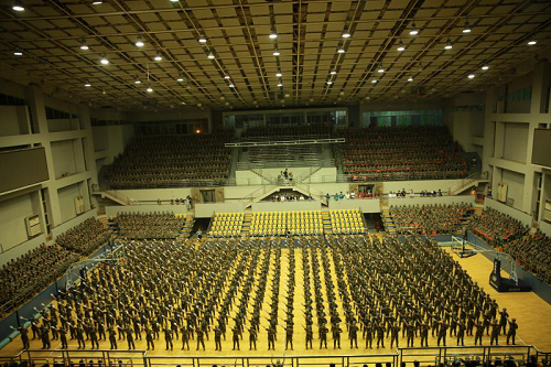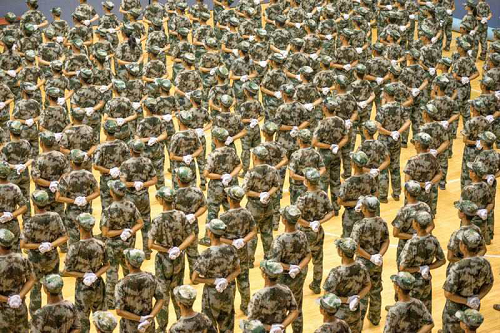 9月13日晚,湖南大学2018级军训歌咏比赛在体育馆顺利举行,新闻传播与影视艺术学院所属的六营在与其他七支队伍的角逐中取得了第四名的佳绩。 本次歌咏比赛参赛曲目分为必选曲目和自选曲目。《解放军进行曲》作为必选曲目,会被每支队伍演唱,但是全体参赛营队各显其能,将舞蹈、朗诵、动作等与歌曲相融合,使得现场的表演别具一格。