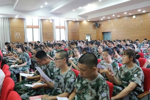 会上2018级军训团队也正式与新生见面。主持人一一对军训团队成员的履历进行介绍,这让新生对军训团队有进一步了解,也更加有利于军训工作的良好开展。
