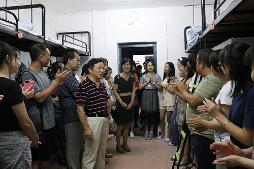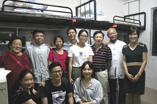 这晚,还有一个特别的新生家庭,8位亲友陪同着新传1801班的蒲月来到了长沙,在确认蒲月安顿好之后,家长们还要赶着送蒲月的哥哥前往另一个学校进行研究生报到。领导老师和这个大家庭交流了长沙和学校的基本情况,欢迎家长们到学校参观,并留下宝贵的合影。