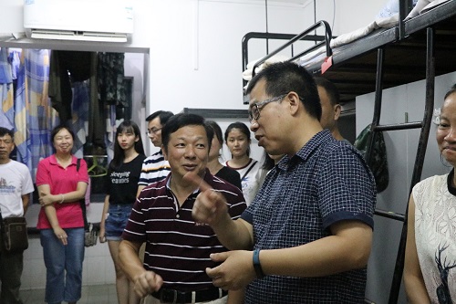 9月1日是新生来校报到的第二天,学院大部分新生已经在新生助理的带领下办理好报到手续并入住寝室。晚上七点,学院党委书记胡建国、党委副书记兼副院长程华、18级辅导员刘佳来到新生寝室看望新生及新生家长们。