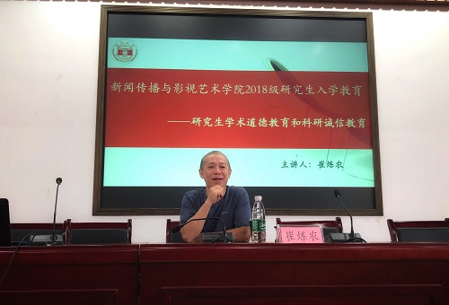 9月6日上午,湖南大学新闻传播与影视艺术学院2018级研究生入学教育——研究生学术道德教育和科研诚信教育专题报告会在北楼217报告厅举行,本次讲座由崔炼农教授主讲,新影学院2018级全体研究生参加。