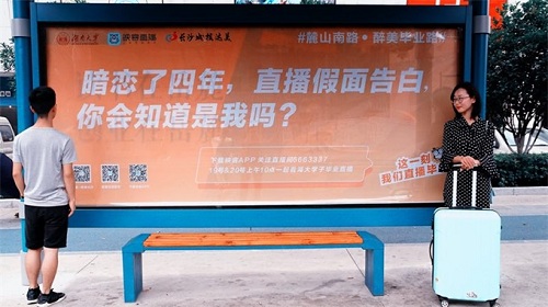 本次湖南大学毕业季系列活动注重情怀、创意以及互动性,由湖南大学新闻传播与影视艺术学院敢为先文创团队策划,联手映客直播、长沙城投达美共同推进的毕业活动。除了毕业主题的公交站牌送祝福外,6月19日至6月20日还将在校内荫马塘运动场开展毕业直播亭活动。