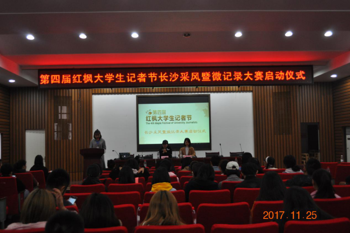 11月25日下午2:30,第四届红枫大学生记者节系列活动之“长沙采风暨微记录大赛”启动仪式于湖南大学教学北楼217报告厅举行。