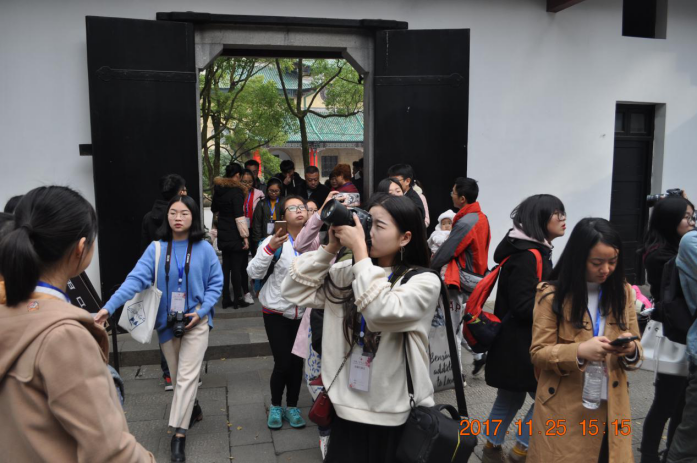 来自南开大学、武汉大学、厦门大学、北京外国语大学等高校的近百位大学生记者分为七个小组,在引导员的带领下,从东方红广场出发,沿经岳麓书院、爱晚亭,最终到达麓山寺,结束了本次采风活动。