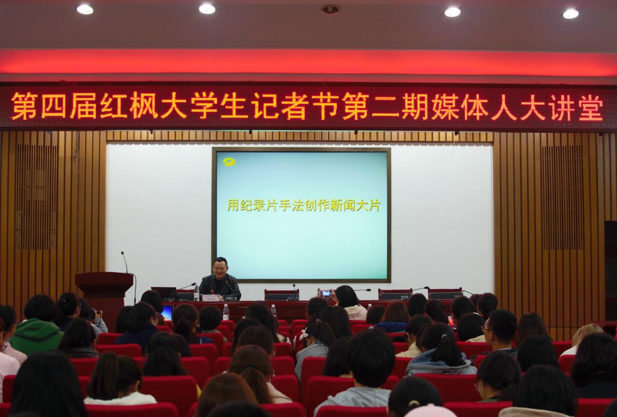 11月14日下午三点,第四届红枫大学生记者节媒体人大讲堂第二期在湖南大学北楼217报告厅举行。湖南广播电视台新闻中心编辑刘学波与在座的新闻学子分享了他在工作中对新闻的感悟。