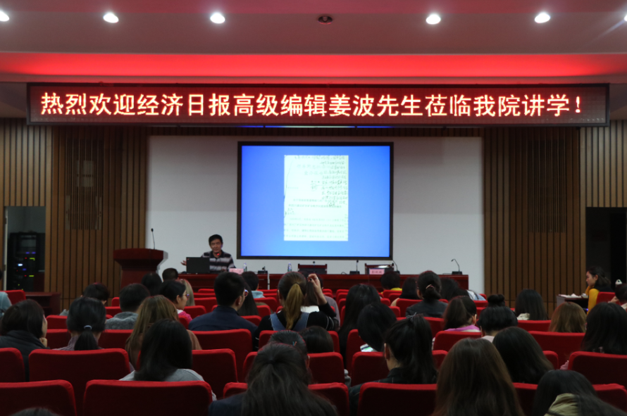 讲座开始前,彭祝斌院长对姜波先生做了简要介绍,姜波先生于1982年毕业于中国人民大学新闻系,后在日本早稻田大学进修两年经济学。在从事新闻工作的30余年里,姜波先生先后采写新闻作品上百万字,七次获得中国新闻奖,入选全国文化宣传系统“四个一批”人才暨文化名家,享受国务院特殊津贴,并长年在中国人民大学新闻学院为研究生班授课。“姜波先生不仅是一位出色的记者,还是一位思想家,一位学者。”彭祝斌院长评价到。