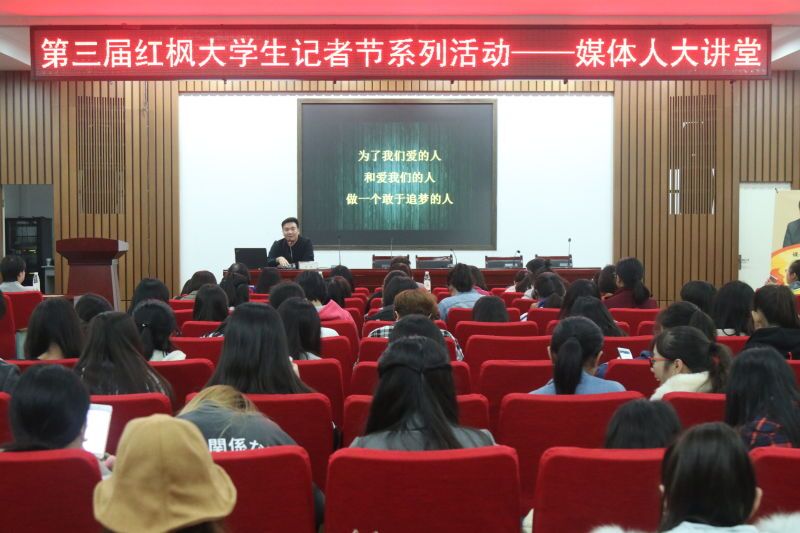 11月17日晚7点,第三届红枫大学生记者节分活动媒体人大讲堂之“永远要做一个敢于追梦的少年”在湖南大学北楼217报告厅举行,本次活动邀请了来自银河酷娱创始人兼CEO李炜,与全国各高校的校媒和学生记者分享他追梦的岁月。