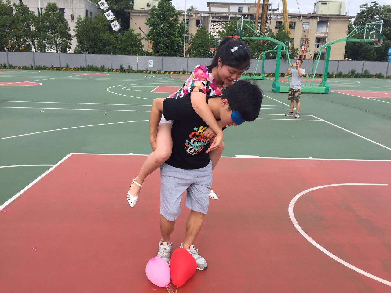 下午3点,活动正式开始,现场气氛热烈,大家在自己的小组内积极讨论分工、上场选手事宜。脖子夹气球、筷子运输、你是我的眼、水果王等游戏使现场持续升温,尤其是在“你是我的眼”游戏环节中,男同学需蒙眼背着女同学绕过障碍,并踩爆气球、回答正确问题,紧张而又有趣,考验了男女同学之间的默契。整场活动持续了一个多小时,炎热天气依然挡不住同学们高涨的热情。