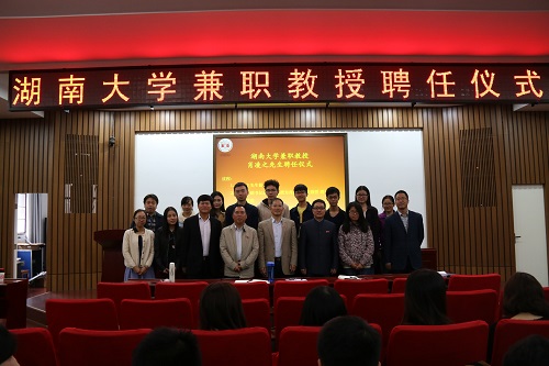 10月30日下午,学院模拟新闻发布中心举行聘任仪式,聘任湖南省文化厅副厅长肖凌之为湖南大学兼职教授和专业硕士研究生校外导师。校党委副书记唐亚阳教授为肖凌之颁发聘书、佩戴校徽,院长彭祝斌教授主持聘任仪式。