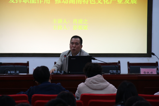聘任仪式结束后,肖凌之教授为我院师生做了题为《发挥职能作用,推动湖南特色文化产业发展》的学术讲座,从特色文化产业的界定、湖南特色文化产业的发展现状、湖南特色文化产业的发展方略等方面,就如何推动湖南特色文化产业的发展等问题,阐述了他的思考和见解。肖凌之教授还与现场的同学们进行了互动交流,对同学们提出的问题进行了认真的解答。