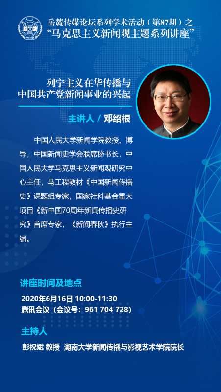主讲人简介:中国人民大学新闻学院教授、博导,中国新闻史学会联席秘书长,中国人民大学马克思主义新闻观研究中心主任,马工程教材《中国新闻传播史》课题组专家,国家社科基金重大项目《新中国70周年新闻传播史研究》首席专家,《新闻春秋》执行主编。